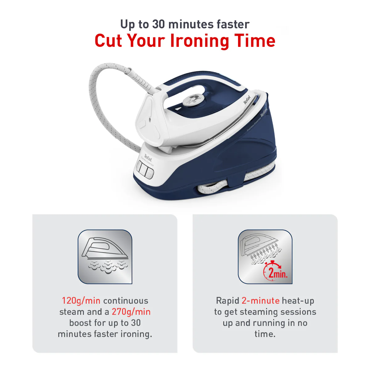 Tefal Express Easy Steam Station Steam Generator 1.4L 2200W SV6116 270g Steam Boost, Smart Technology, Compact, Flawless Glide