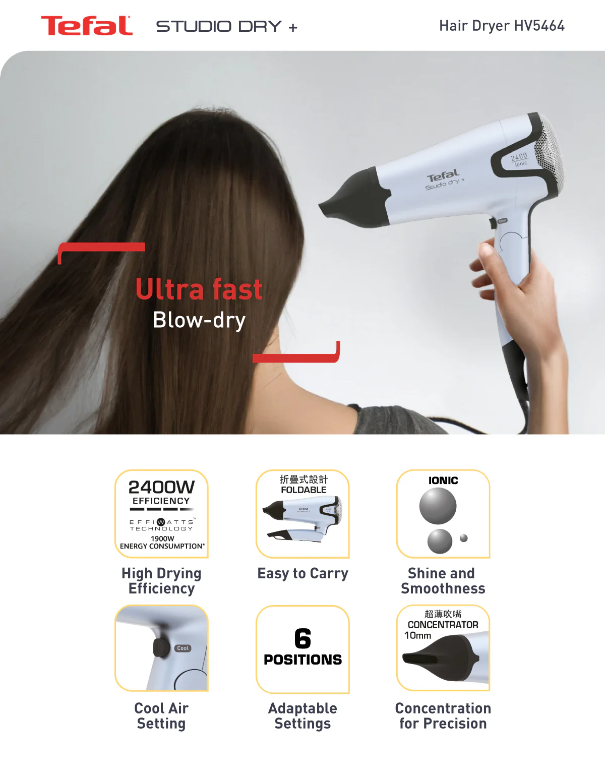 Tefal Hair Dryer Studio Dry + Foldable HV5464