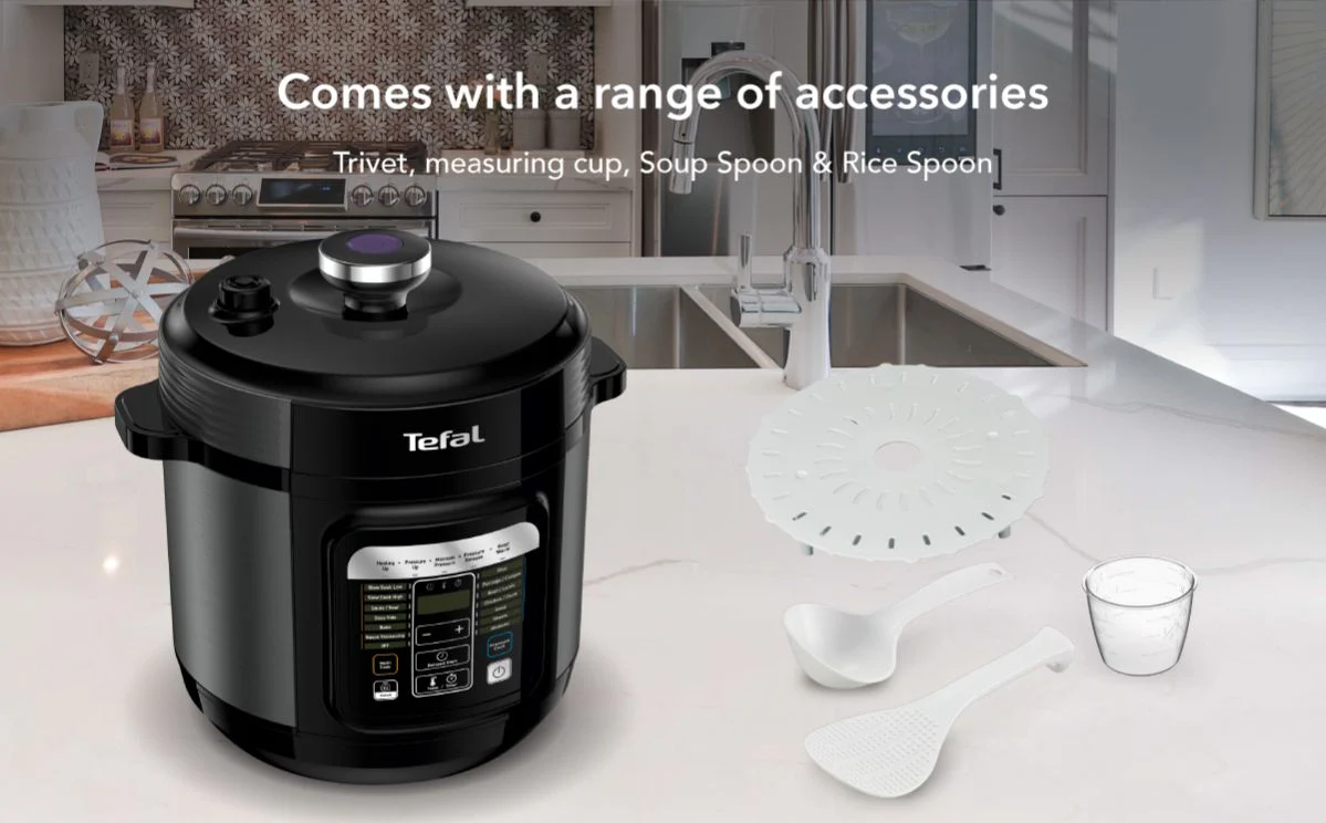 Tefal Home Chef Smart Electric Pressure Cooker 6L CY601 Multicooker, 15 programmes, 12 cups, steam, slow cook, bake, sous vide, sauce thickening